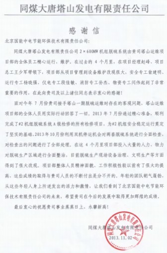 當(dāng)前位置: 國能中電公司動態(tài)> 塔山項目感謝信